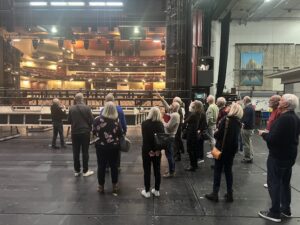 Am 8. November trafen sich dann ca. 20 Mitglieder mit dem langjährigen, ehemaligen Sicherheitschef des Theaters Basel, Dieter Müller, zu einem hochinteressanten Rundgang hinter die Kulissen dieses Theaters. Wer wusste, dass dieses Theater bereits vor 50 Jahren eine solch beeindruckende Grösse und Flexibilität in der Bühnentechnik realisierte? Haute arbeiten 500 Mitarbeitende für dieses KMU , davon Spezialisten aus mehr als 50 verschiedenen Handwerker-Gewerben, 35’000 Kostüme und 7’000 Schuhe nennt das Theater sein eigen, und die jedes Jahr geprüften Maschinen können bis zu 8 to schwere Vorhang- und Bühnenelemente hoch und runterfahren …